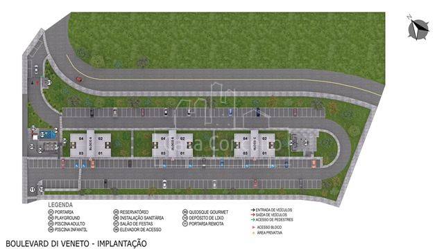 Nas áreas comuns do condomínio possuirá: Área de lazer com salão de festa com churrasqueira, piscina adulto e infantil, playground e Wash Car.