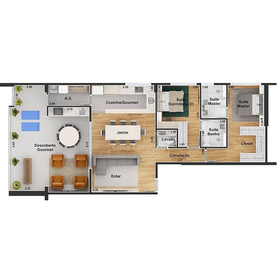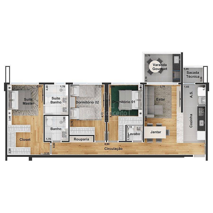 Infra estrutura para futura recarga de carros elétricos; • Depósito delivery; • Guarita blindada e sistema de monitoramento CFTV; • Piscina semi-olímpica 25 m e climatizada; • Ambientes das áreas comuns decorados e equipados com referência as imagens 3D; • Quadra com tamanho poliesportiva e isolada do condomínio por declive proporcionando diminuição de ruídos; • 3 elevadores na torre com tecnologia regenerativa de energia. Preparo para instalação de automação residencial e tomadas USB; • 2 vagas cobertas pré-determinadas e depósito privativo para todos os apartamentos; • Infra completa para aquecimento a gás (preparado com misturadores e pontos de água quente nos banheiros, lavabos, varanda gourmet e cozinha); • Infraestrutura completa para instalação de ar-condicionado (quartos e sala); • Janelas amplas que proporcionam maior luminosidade; • Entregue com todos metais; • Persianas integradas nos dormitórios (blackout) para mais conforto e privacidade com preparo para motorização; • Varandas ou terraço gourmet entregue com grill a gás; • Entregue com pisos em todos os ambientes, porcelanato e/ou laminado nos quartos e sala; • Sacada técnica para máquina de arcondicionados; Área de Lazer completa: Hall Social, Salão Festas, Academia, Home Offeice, Espaço Mulher, Quadra Squash, Brinquedoteca, Área Gourmet, Piscina semiolímpica climatizada e Quadra poli esportiva, Espaço Pet, Vestiários, Solário, Playground, Espaço convívio, Gourmet, Academia ao Ar Livre, Espaço Mulher, Sala Técnica, Home Office, Academia, Salão de Festas, Praça, Quadra de Squash e Salão Comercial.