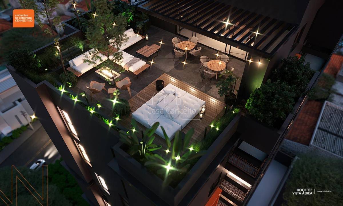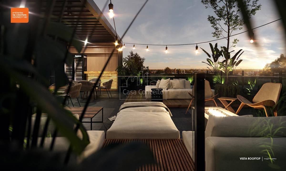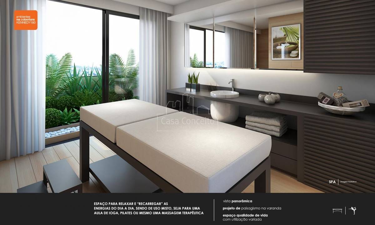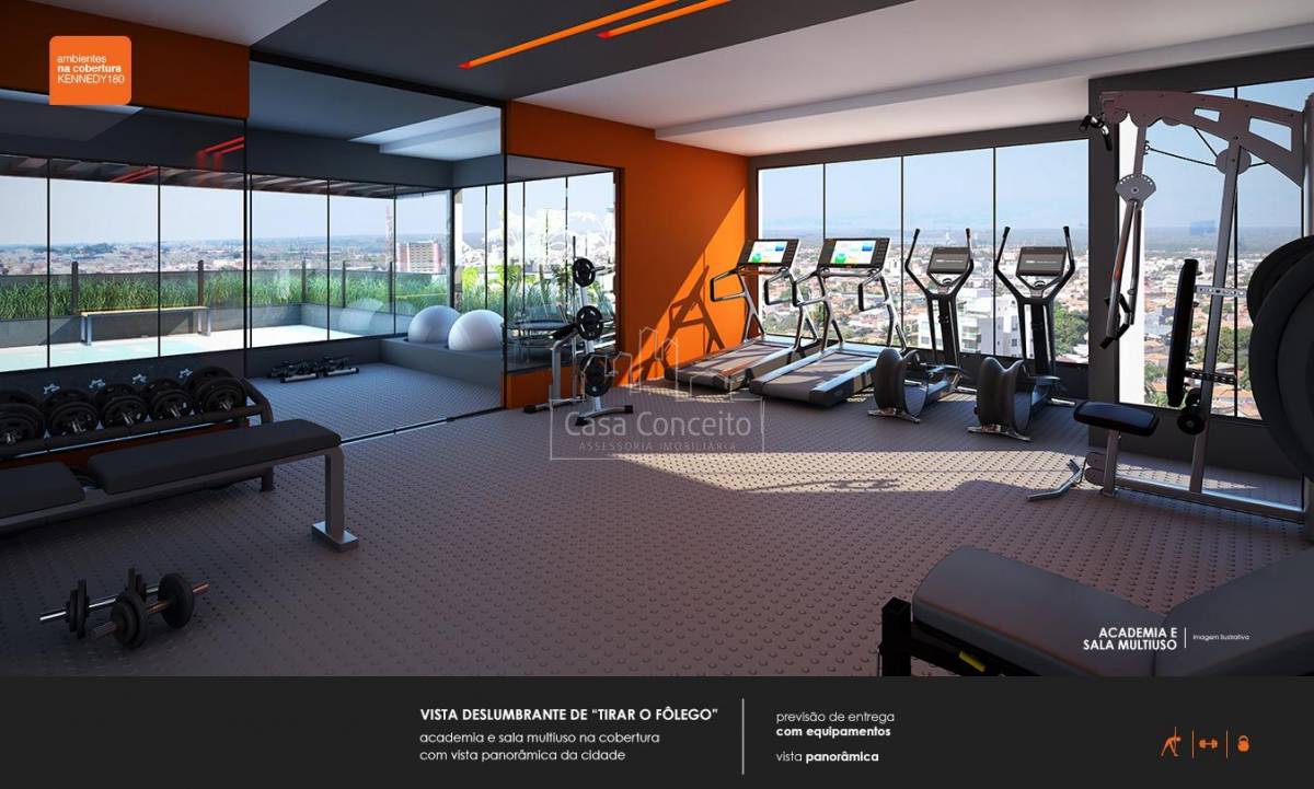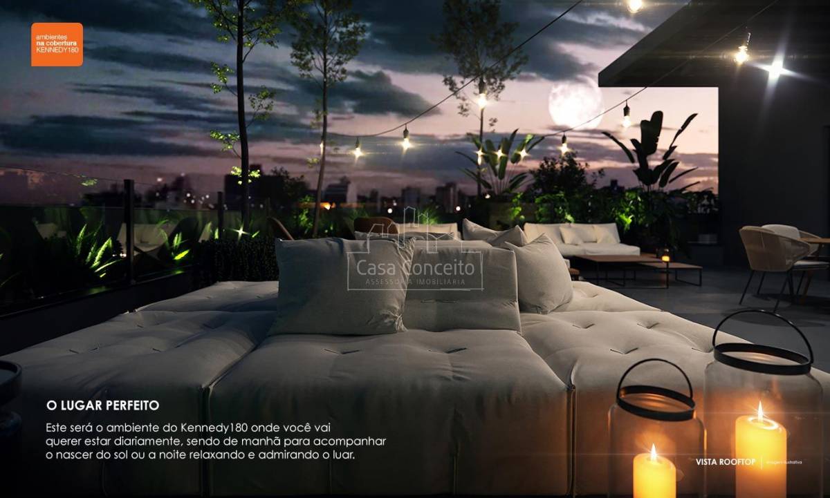 KENNEDY 180, arquitetura em forma de arte! Com pé direito duplo na entrada, contém espaço comercial com 186,44m² e uma torre única com 61 apartamentos de 2 ou 3 dormitórios com suíte. Plantas de 56,56m² à 116,55m² com 1 ou 2 vagas cobertas e depósito privativo. Área Gourmet com Terraço Lounge, Academia, SPA, Terraço Zen e um maravilhoso Rooftop com vista panorâmica.
