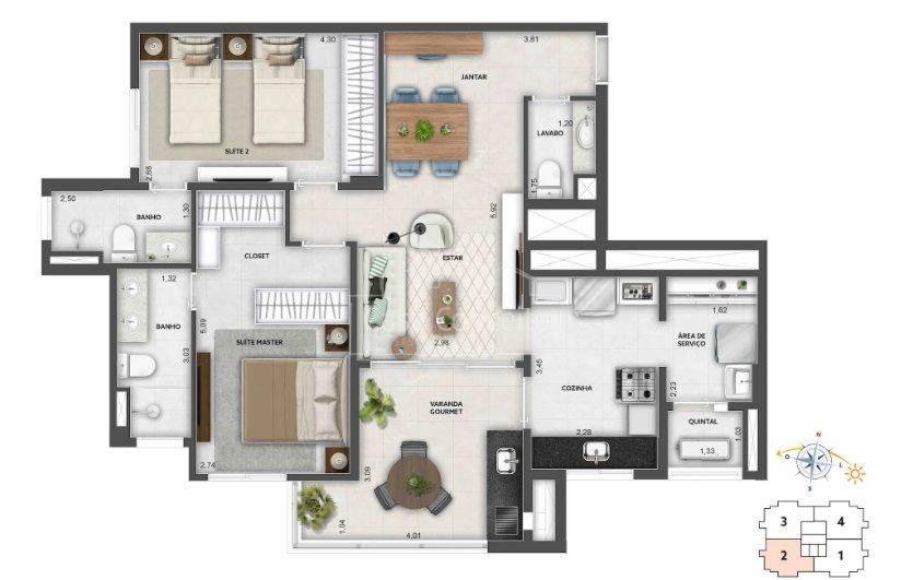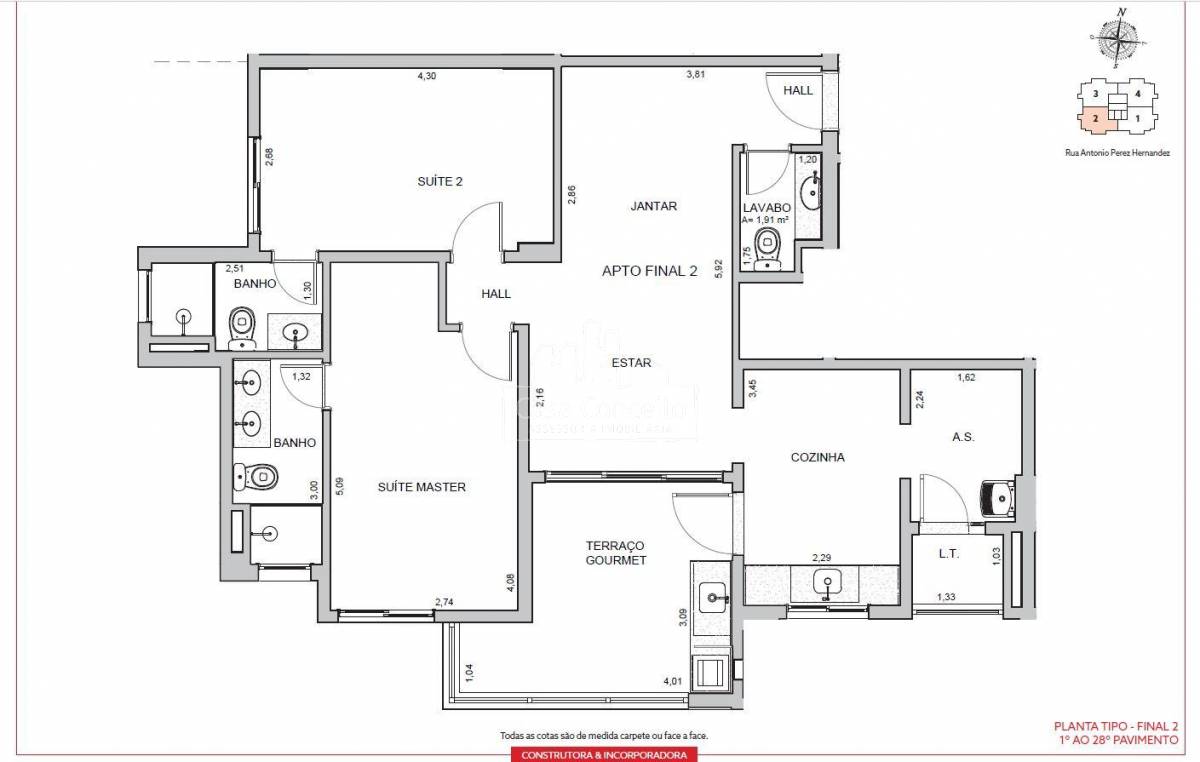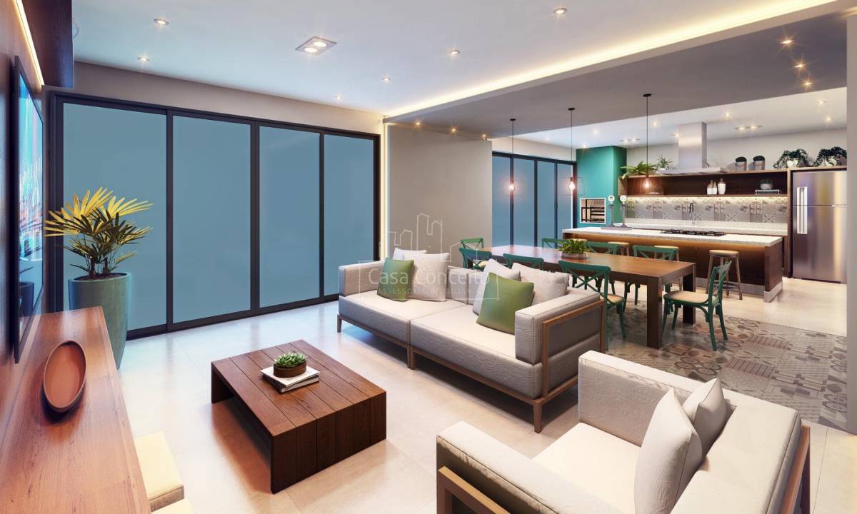 Área Interna: Infraestrutura para ar condicionado, aquecedor a gás, varanda gourmet churrasqueira a carvão e chapa dupla, bancadas dos banheiros das suítes serão com cuba de louça embutida no granito polido, lavabo amplo e muito bem posicionado, guarda corpo das varandas em alvenaria e vidro, piso da varanda gourmet nivelado com sala, porta com Passa Pets, misturador de águas quente nas torneiras dos banheiros e da cozinha, fechadura biométrica e com senha na porta da entrada, tomadas USB nas suítes e sala, gerador de energia mantendo um ponto de luz na sala, um ponto na cozinha e a tomada na geladeira em caso de falta de energia. Área Comum: 22 vagas para motos nos subsolo, 9 vagas para visitantes no térreo, sendo 1 de PcD, espaço Uber (Criamos um local para as pessoas aguardarem o transporte com segurança e conforto, Ponto de recarga para carros elétricos, Car wash, Delivery Room, piscina será climatizada/ aquecida e terá banco de transferência para atender PcD, Casa de Campo, Churrasqueira externa, Salão de Festa, forna pizza, geladeira, chopeira e bancada em granito, beauty carre, Coworking, Pet Place, Dog Wash,