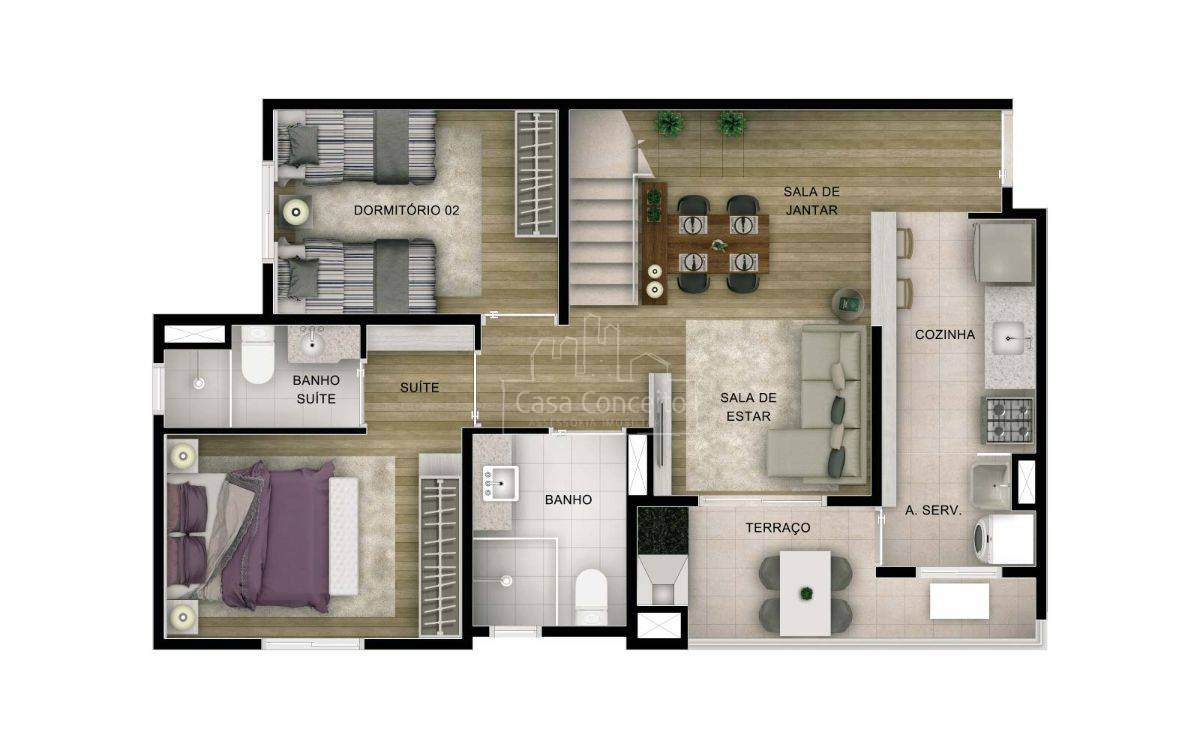 O grande diferencial fica por conta de uma exuberante mata preservada. A ligação entre os apartamentos e o bosque privativo dos moradores, com mais de 7 mil m² de natureza exuberante, é feita por uma extensa passarela sobre a natureza. Piscinas adulto e infantil Deck Quadra Streetball Salão de jogos Espaço Fitness Playground integrado a natureza Redário no bosque Quiosques gourmet Espaço Zen Salão de festas Espaço Musical Home Cinema Brinquedoteca Trilha para caminhadas em meio ao bosque Mata preservada Horta orgânica Varanda gourmet com churrasqueira, integrada ao jardim privativo de aproximadamente 90m² Preparação para ar condicionado Terraço gourmet com churrasqueira Terraço com infraestrutura para SPA