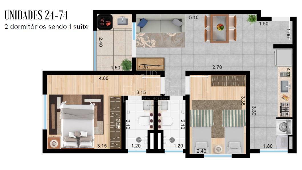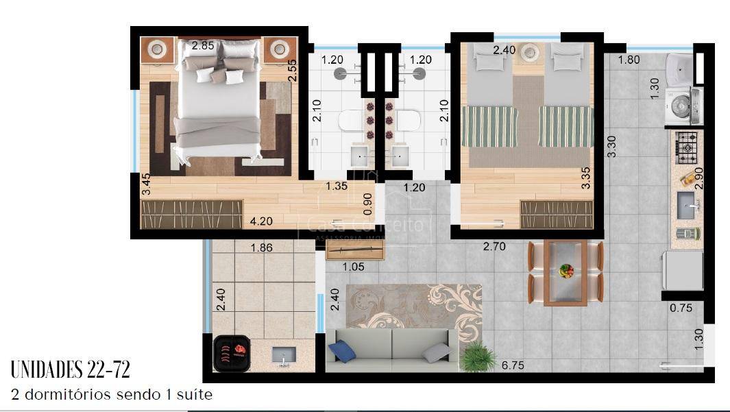 Condomínio Residencial de 37 apartamentos de 2 ou 3 dormitórios com suíte , sala, cozinha, lavanderia, banheiro, varanda e opções com quintal. 200m do Largo do Divino, 7min do Shopping Iguatemi e 3min da Rodovia Raposo Tavares