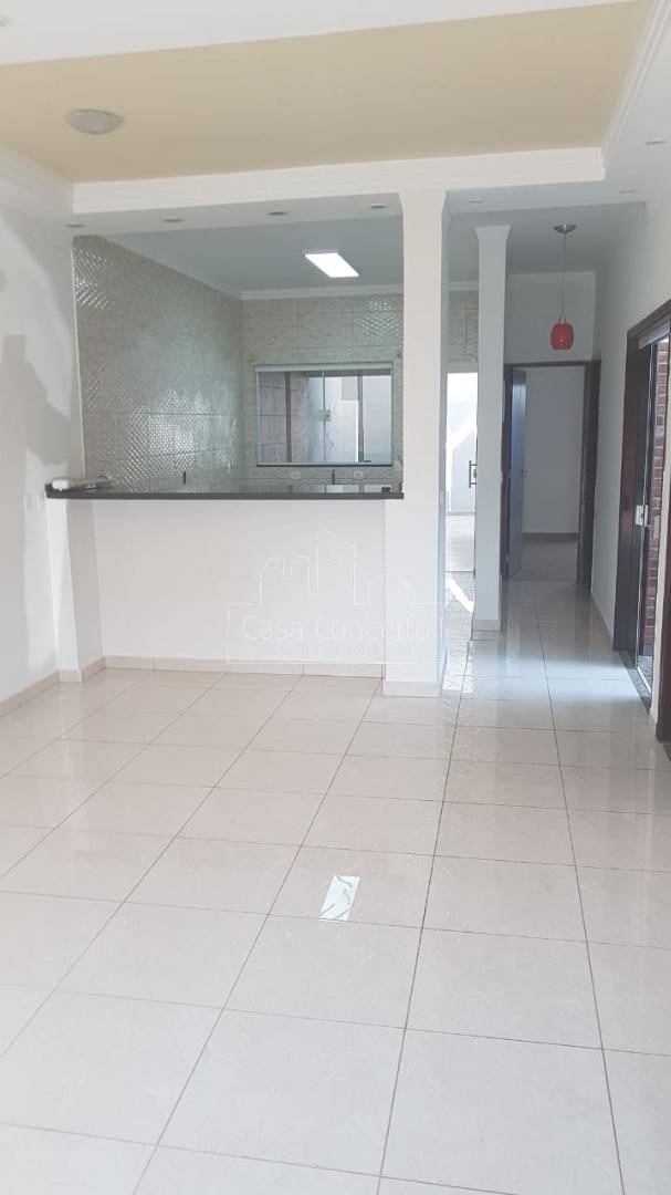 Casa térrea com 3 dormitórios, 1 suíte, pia em travertino, com cuba de vidro, banheiro com box, lavanderia com tanque de porcelana branco. Acabamento de primeira e sanca, área de luz, garagem descoberta para dois carros.