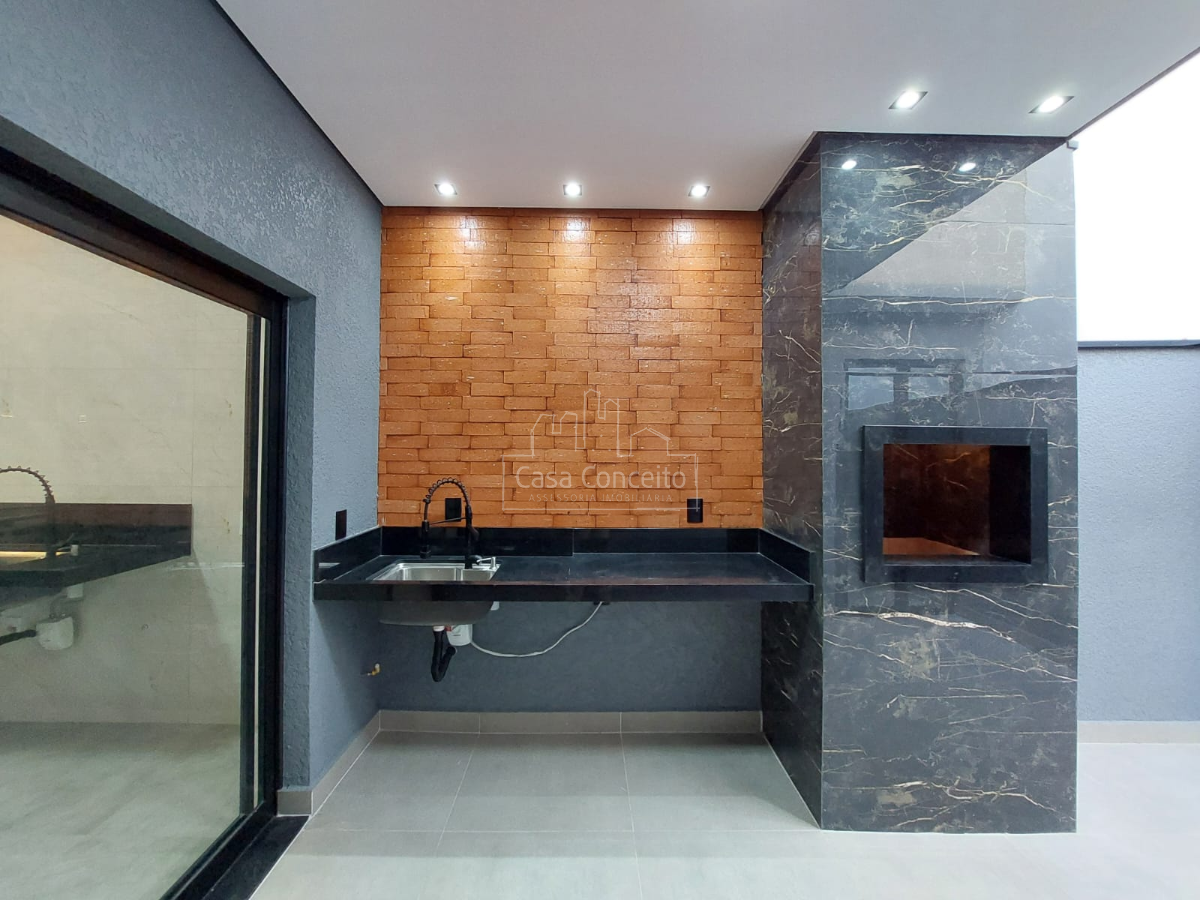 A área gourmet é um destaque, com churrasqueira em porcelanato e bancada de mármore com pia gourmet, ideal para momentos de lazer e entretenimento.