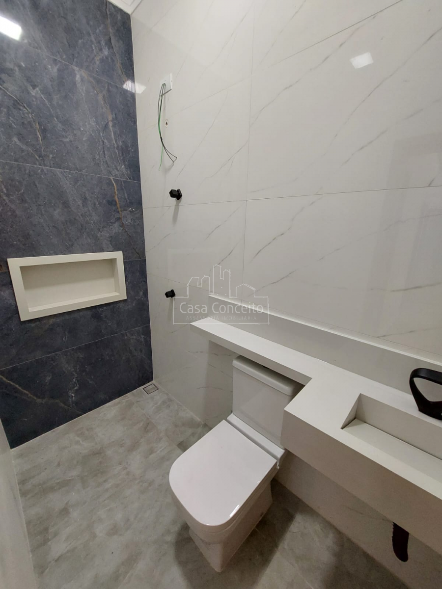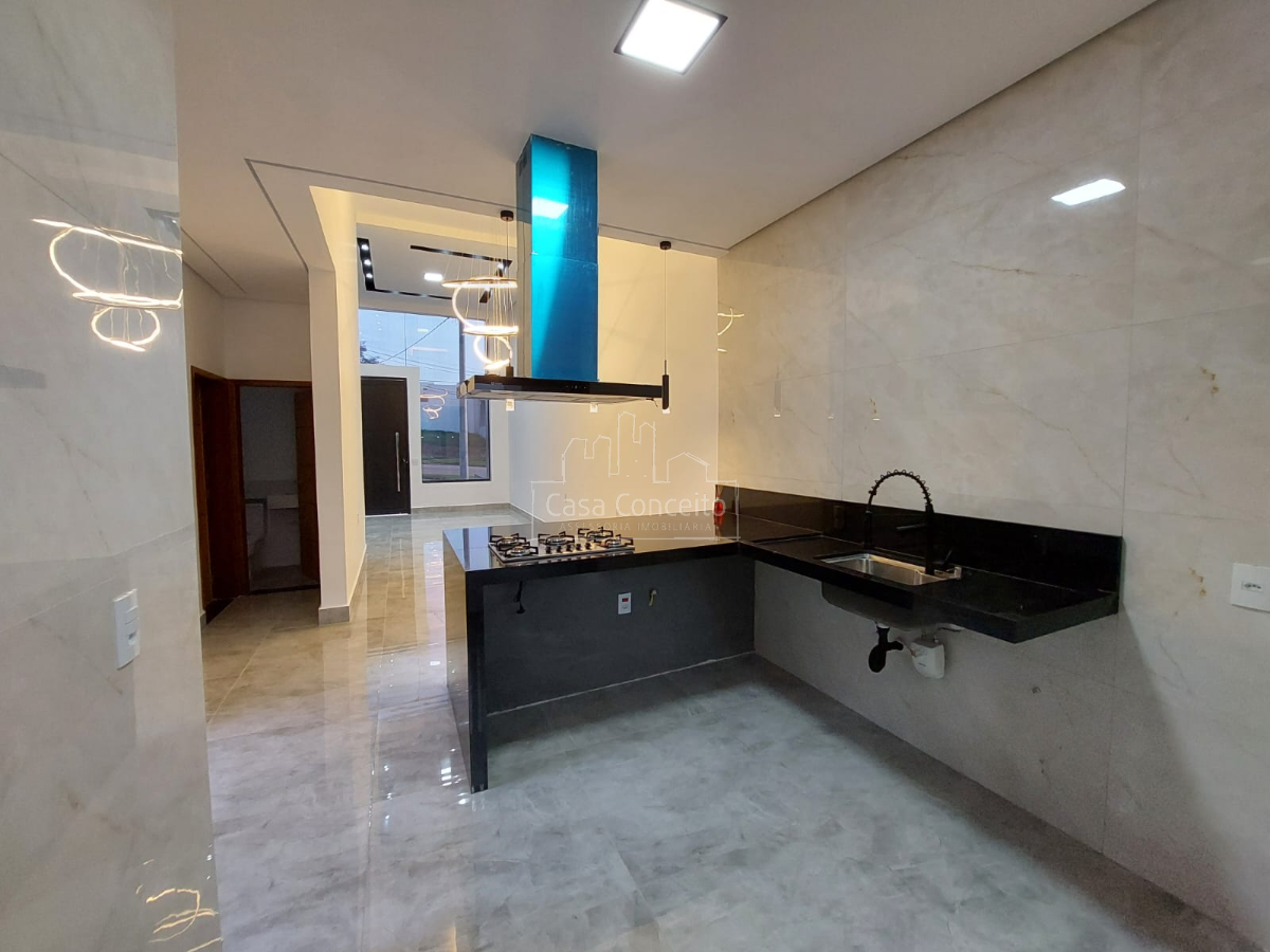 A cozinha é equipada com bancada de mármore, pia gourmet, exaustor e cooktop, oferecendo praticidade e requinte. O imóvel possui 3 banheiros completos (incluindo os das suítes), todos com pias e nichos em Prime Branco, garantindo funcionalidade e estilo.