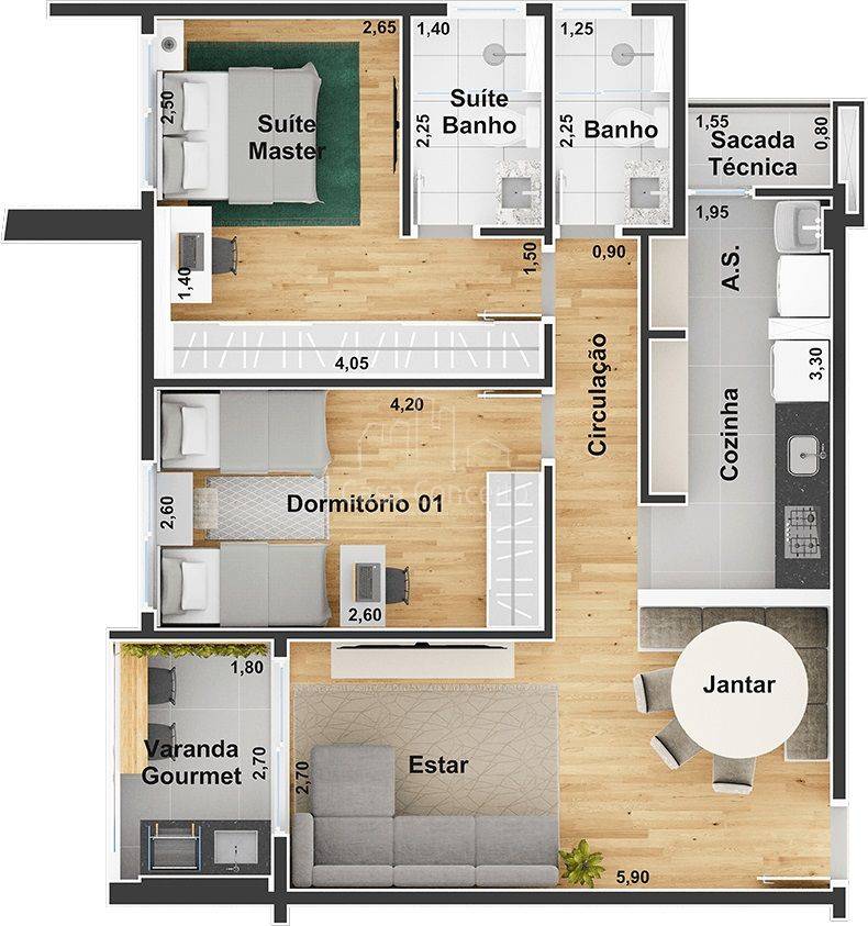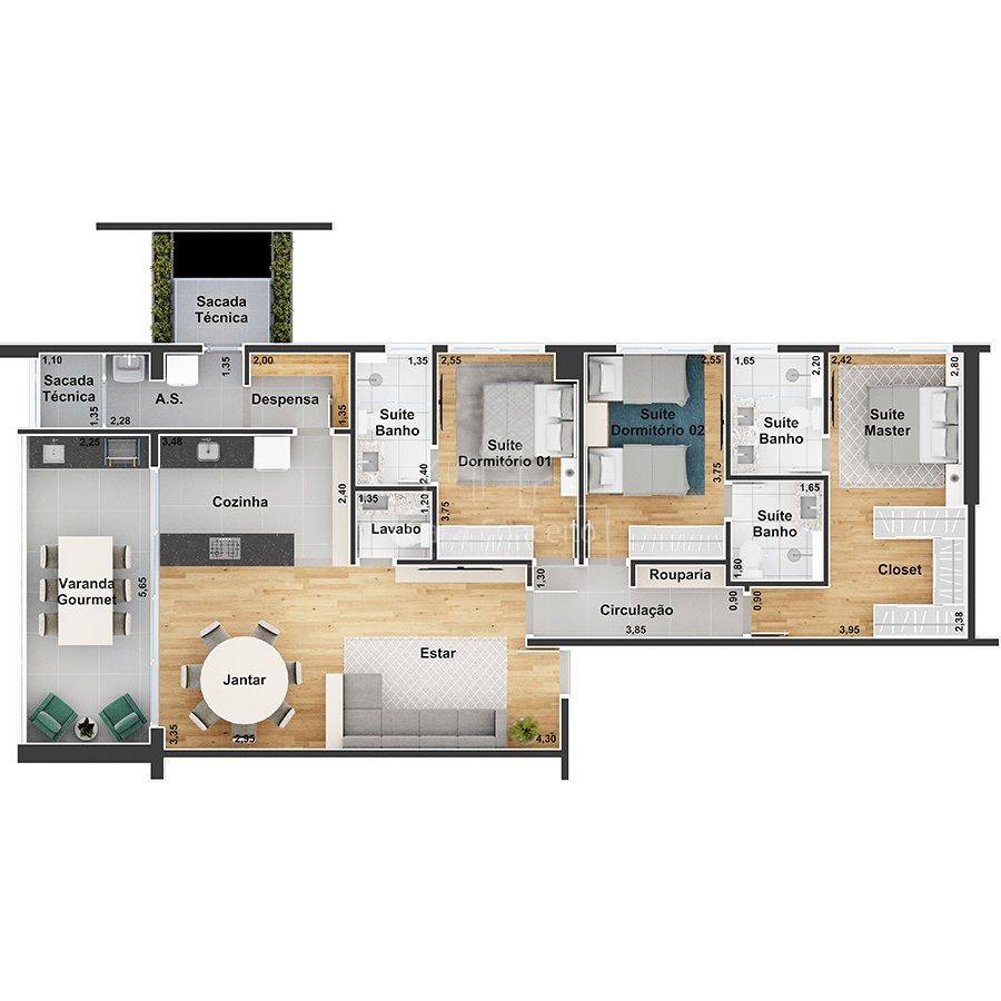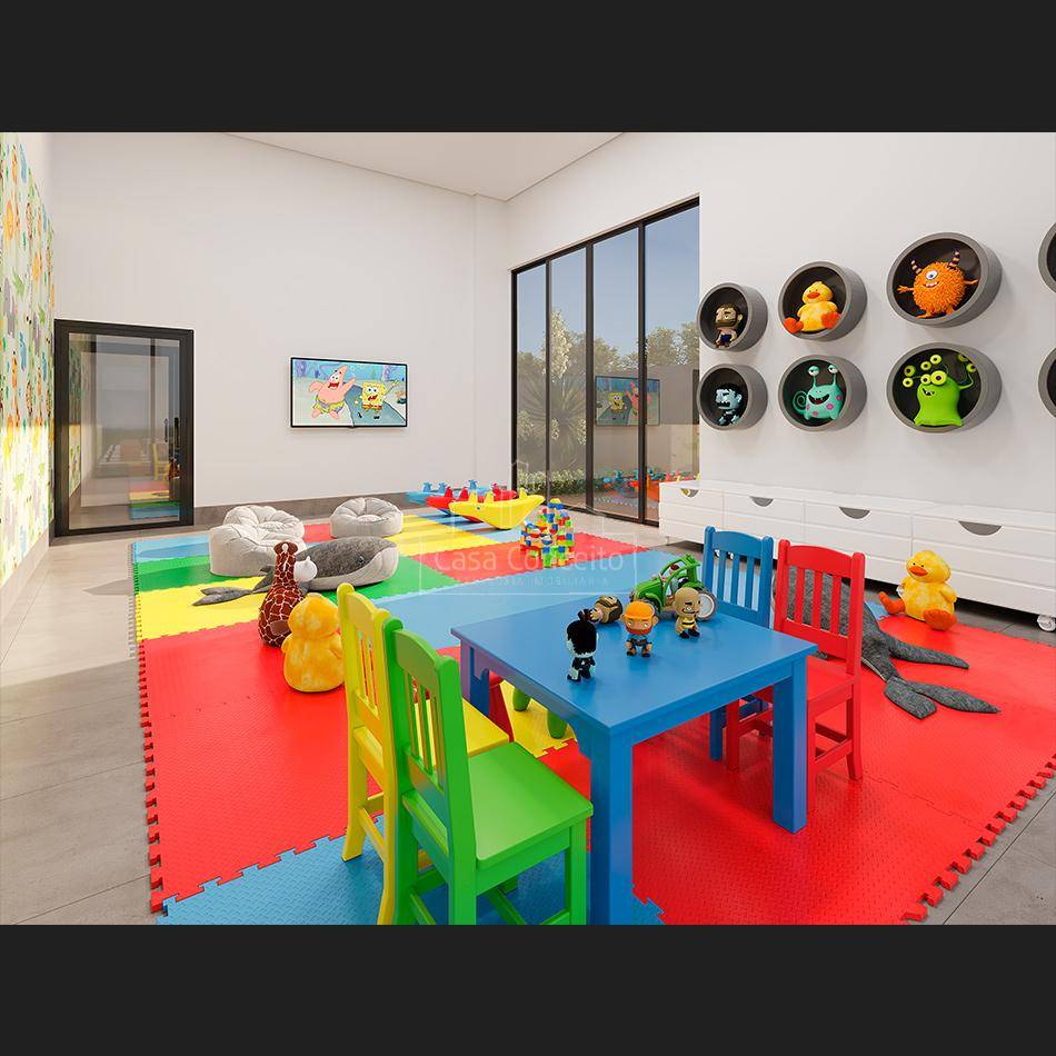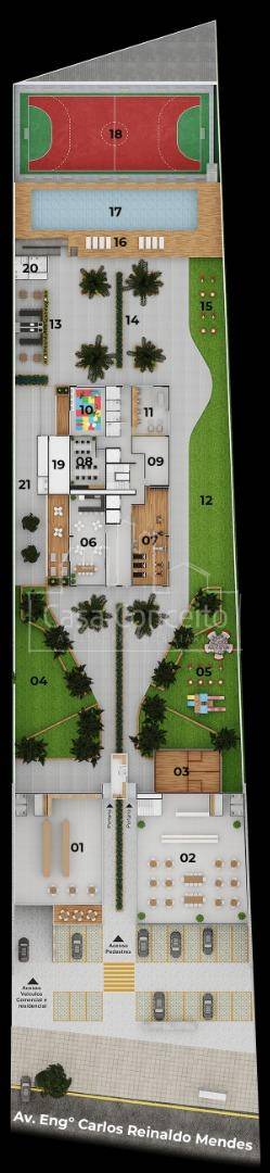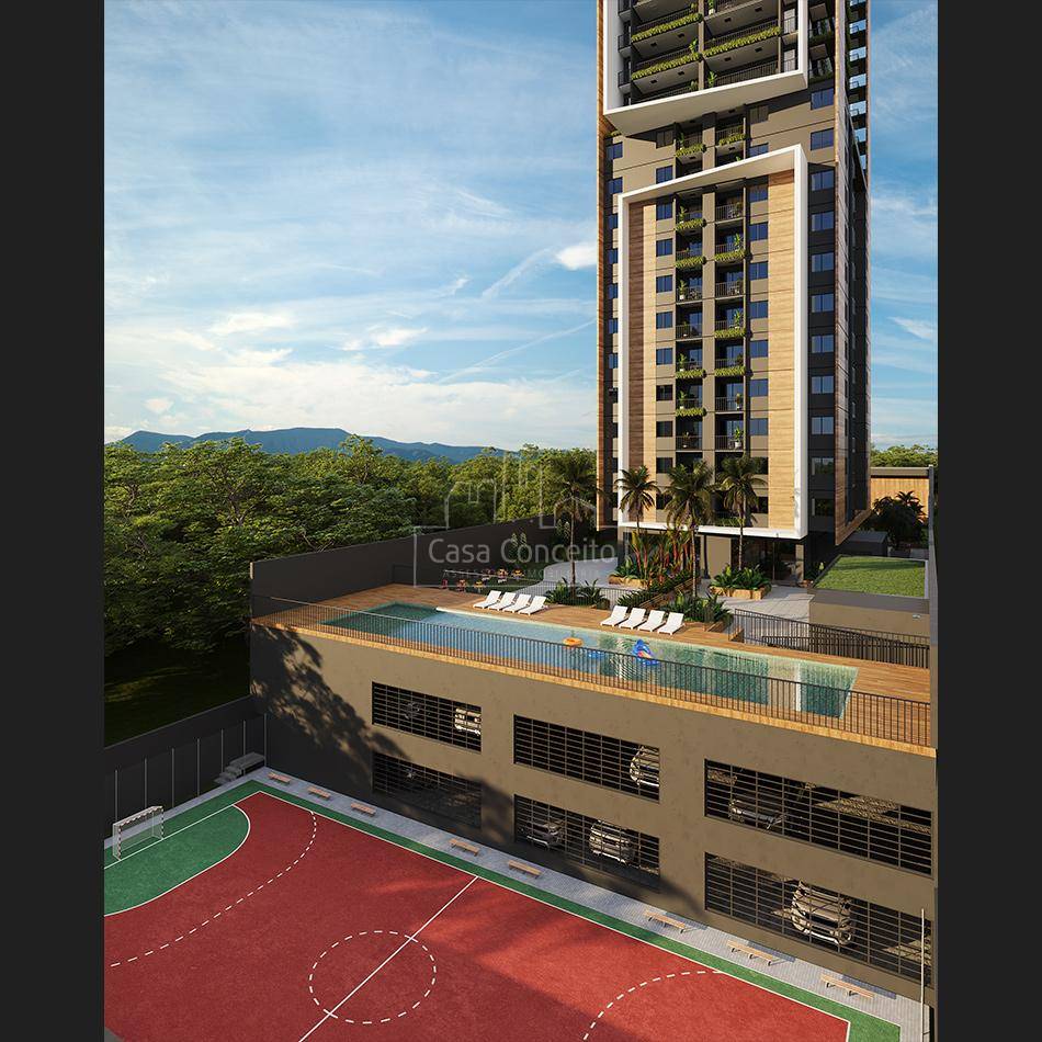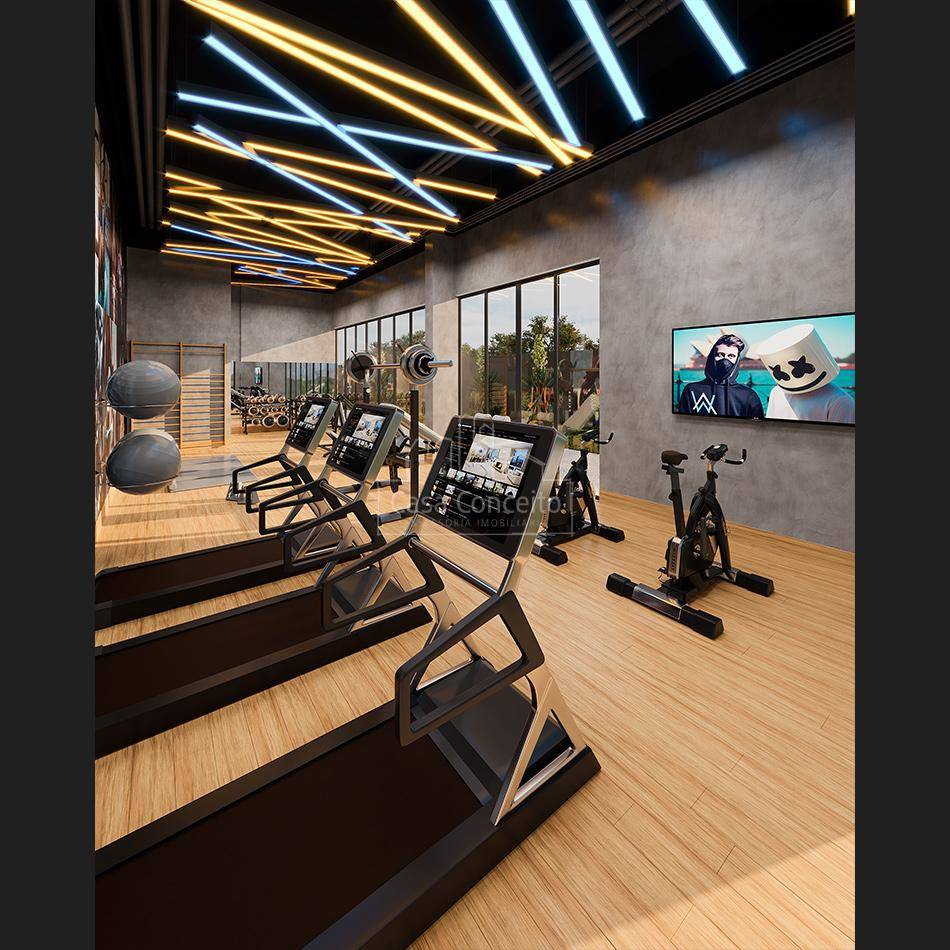 Infra estrutura para futura recarga de carros elétricos; • Depósito delivery; • Guarita blindada e sistema de monitoramento CFTV; • Piscina semi-olímpica 25 m e climatizada; • Ambientes das áreas comuns decorados e equipados com referência as imagens 3D; • Quadra com tamanho poliesportiva e isolada do condomínio por declive proporcionando diminuição de ruídos; • 3 elevadores na torre com tecnologia regenerativa de energia. Preparo para instalação de automação residencial e tomadas USB; • 2 vagas cobertas pré-determinadas e depósito privativo para todos os apartamentos; • Infra completa para aquecimento a gás (preparado com misturadores e pontos de água quente nos banheiros, lavabos, varanda gourmet e cozinha); • Infraestrutura completa para instalação de ar-condicionado (quartos e sala); • Janelas amplas que proporcionam maior luminosidade; • Entregue com todos metais; • Persianas integradas nos dormitórios (blackout) para mais conforto e privacidade com preparo para motorização; • Varandas ou terraço gourmet entregue com grill a gás; • Entregue com pisos em todos os ambientes, porcelanato e/ou laminado nos quartos e sala; • Sacada técnica para máquina de arcondicionados; Área de Lazer completa: Hall Social, Salão Festas, Academia, Home Offeice, Espaço Mulher, Quadra Squash, Brinquedoteca, Área Gourmet, Piscina semiolímpica climatizada e Quadra poli esportiva, Espaço Pet, Vestiários, Solário, Playground, Espaço convívio, Gourmet, Academia ao Ar Livre, Espaço Mulher, Sala Técnica, Home Office, Academia, Salão de Festas, Praça, Quadra de Squash e Salão Comercial.