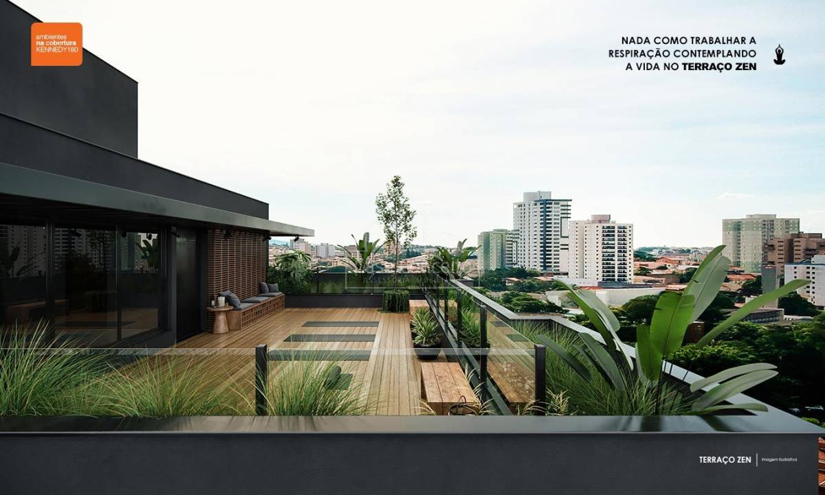 KENNEDY 180, arquitetura em forma de arte! Com pé direito duplo na entrada, contém espaço comercial com 186,44m² e uma torre única com 61 apartamentos de 2 ou 3 dormitórios com suíte. Plantas de 56,56m² à 116,55m² com 1 ou 2 vagas cobertas e depósito privativo. Área Gourmet com Terraço Lounge, Academia, SPA, Terraço Zen e um maravilhoso Rooftop com vista panorâmica.