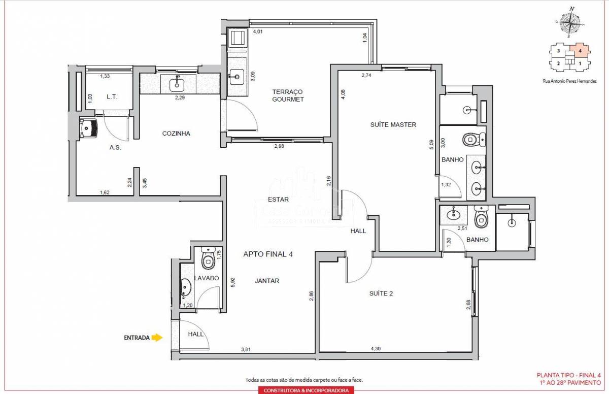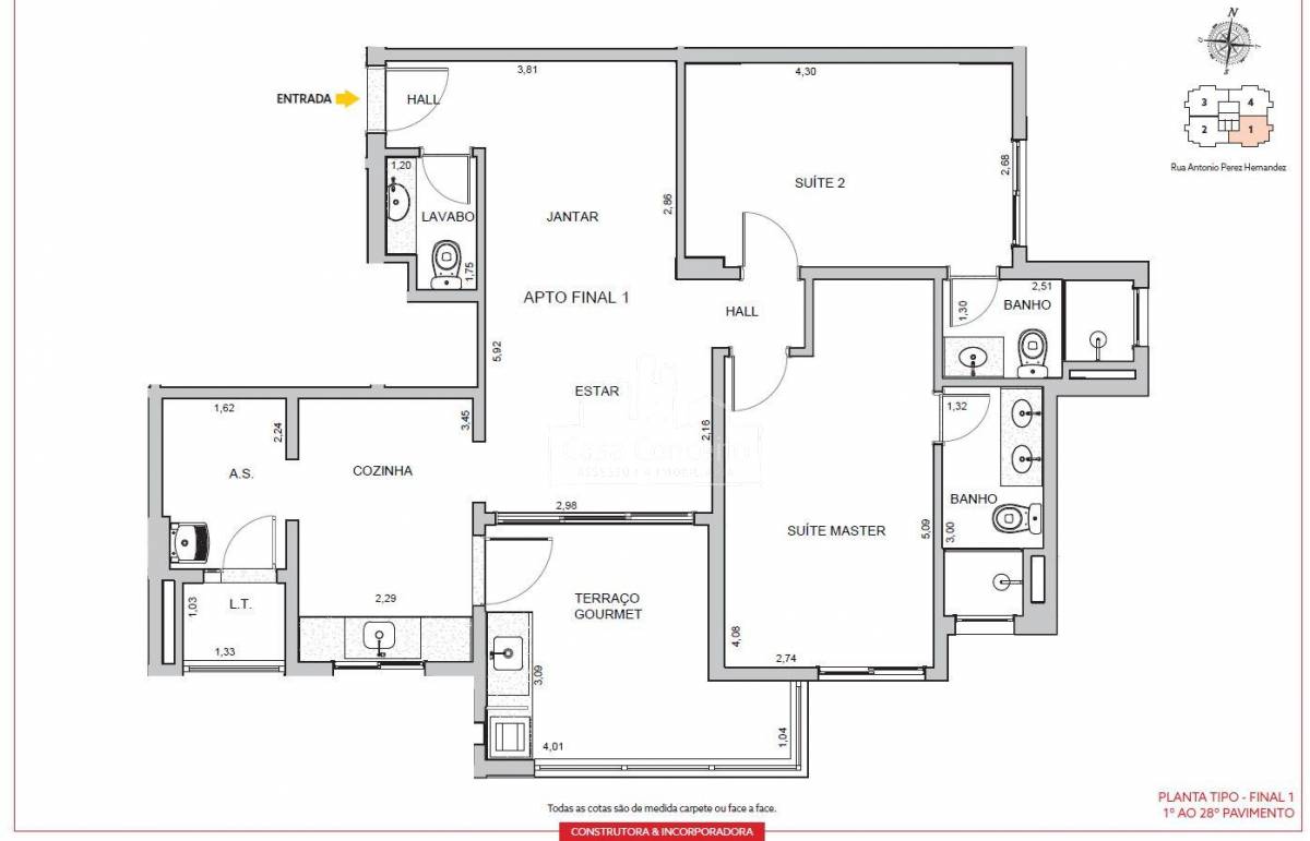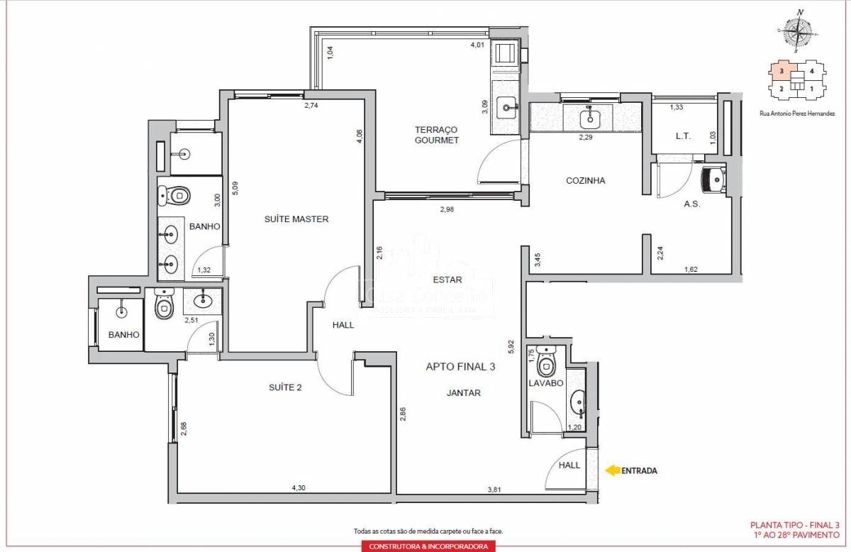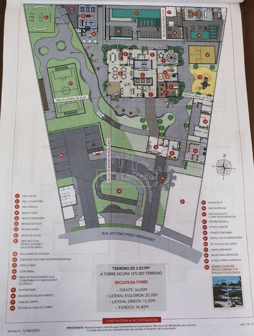 Área Interna: Infraestrutura para ar condicionado, aquecedor a gás, varanda gourmet churrasqueira a carvão e chapa dupla, bancadas dos banheiros das suítes serão com cuba de louça embutida no granito polido, lavabo amplo e muito bem posicionado, guarda corpo das varandas em alvenaria e vidro, piso da varanda gourmet nivelado com sala, porta com Passa Pets, misturador de águas quente nas torneiras dos banheiros e da cozinha, fechadura biométrica e com senha na porta da entrada, tomadas USB nas suítes e sala, gerador de energia mantendo um ponto de luz na sala, um ponto na cozinha e a tomada na geladeira em caso de falta de energia. Área Comum: 22 vagas para motos nos subsolo, 9 vagas para visitantes no térreo, sendo 1 de PcD, espaço Uber (Criamos um local para as pessoas aguardarem o transporte com segurança e conforto, Ponto de recarga para carros elétricos, Car wash, Delivery Room, piscina será climatizada/ aquecida e terá banco de transferência para atender PcD, Casa de Campo, Churrasqueira externa, Salão de Festa, forna pizza, geladeira, chopeira e bancada em granito, beauty carre, Coworking, Pet Place, Dog Wash,