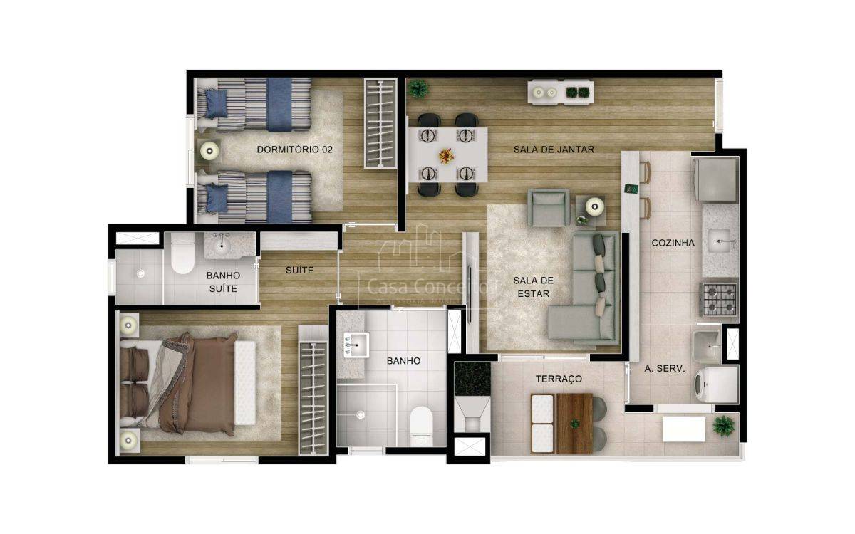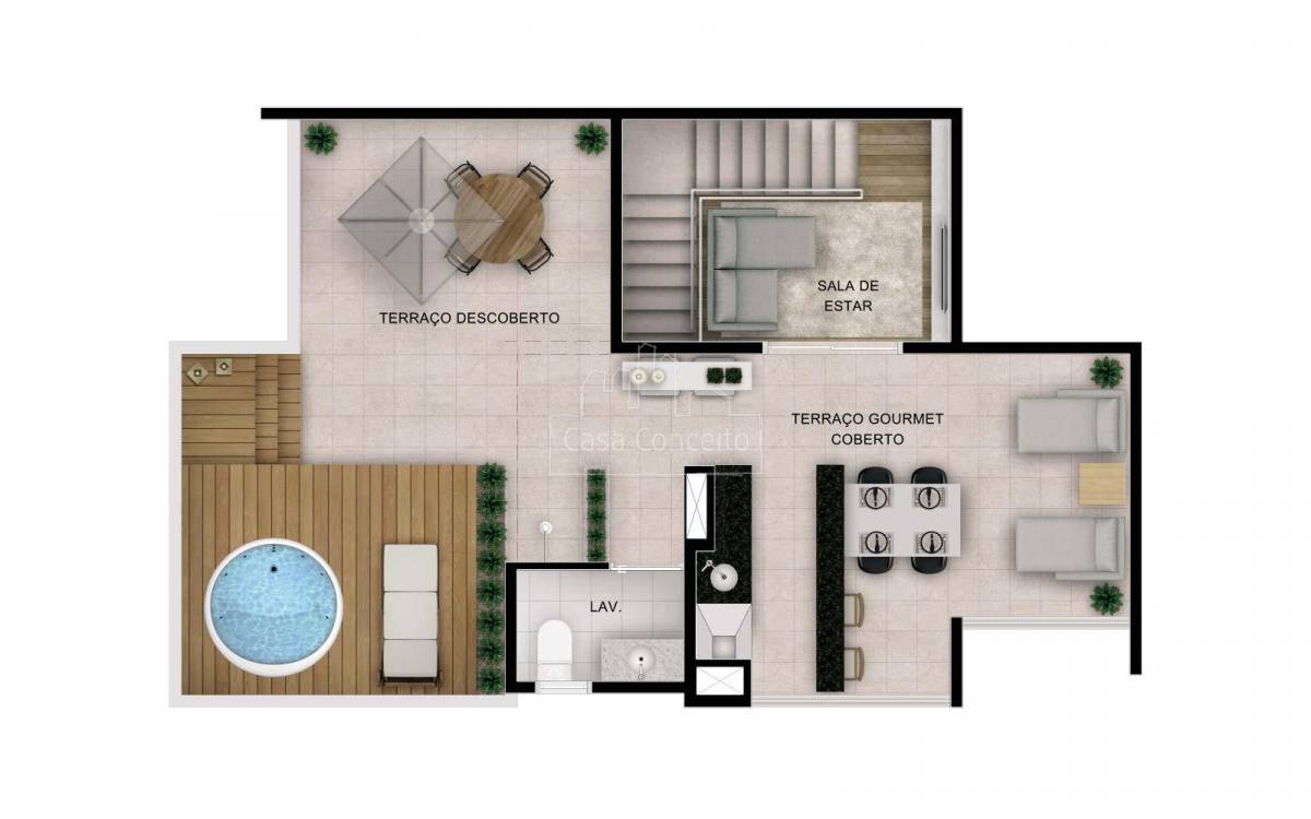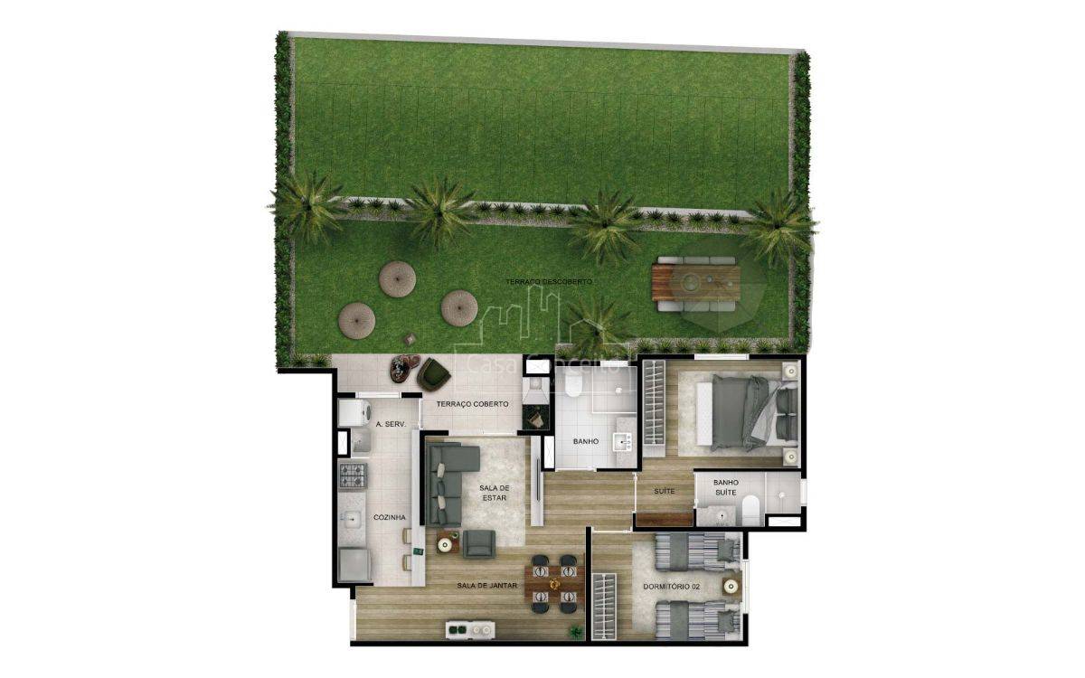 O grande diferencial fica por conta de uma exuberante mata preservada. A ligação entre os apartamentos e o bosque privativo dos moradores, com mais de 7 mil m² de natureza exuberante, é feita por uma extensa passarela sobre a natureza. Piscinas adulto e infantil Deck Quadra Streetball Salão de jogos Espaço Fitness Playground integrado a natureza Redário no bosque Quiosques gourmet Espaço Zen Salão de festas Espaço Musical Home Cinema Brinquedoteca Trilha para caminhadas em meio ao bosque Mata preservada Horta orgânica Varanda gourmet com churrasqueira, integrada ao jardim privativo de aproximadamente 90m² Preparação para ar condicionado Terraço gourmet com churrasqueira Terraço com infraestrutura para SPA