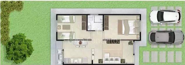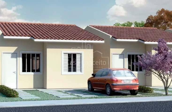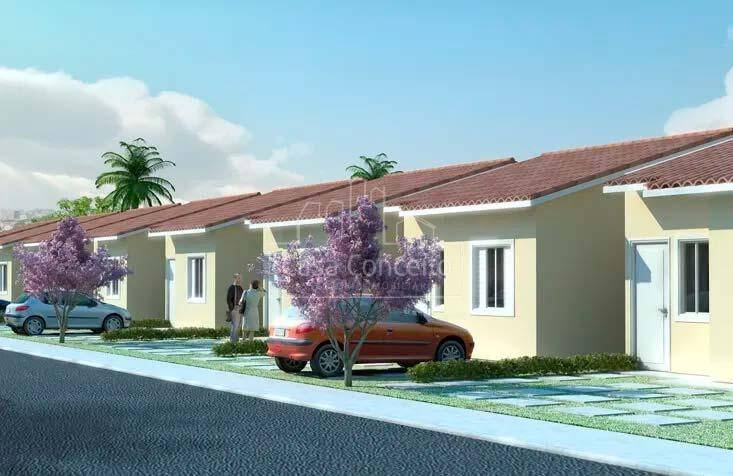 O condomínio Ouro Verde I está pronto para morar. A área verde separa o Condomínio Ouro Verde I do Condomínio Ouro Verde II - Terreno 100m² a 261m² - Área construída 49,80 - 2 Quartos amplos - 1 Banheiro - Garagem para 2 carros - Amplo quintal para ampliação da casa ou construção de edícula.