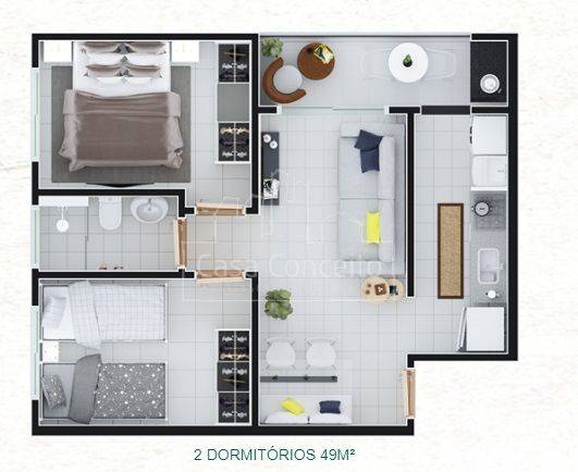 O empreendimento traz modernidade e bem estar que valorizam o bairro inteiro. O projeto se destaca pela sua proposta diferenciada, que promove tranquilidade, segurança, conforto e lazer para toda a família. -Opção de vagas cobertas -Entregue com porcelanato -Infraestrutura para ar-condicionado -Acabamento diferenciado -Sacada estendida -Piscina aquecidas por energia solar -Churrasqueira -Salão de Festa -Fitness -Playground
