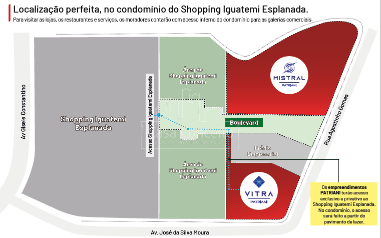 O Vitra Patriani é um empreendimento que une sofisticação, praticidade e modernidade, oferecendo aos seus moradores uma experiência única de conforto e exclusividade. Localizado em uma das regiões mais privilegiadas da cidade, o Vitra tem a vantagem de proporcionar acesso direto ao Shopping Iguatemi Esplanada, sem a necessidade de usar o carro. Essa conectividade é ainda mais aprimorada com a integração ao Bosque Iguatemi, um espaço que faz parte da expansão do projeto e que garantirá uma infraestrutura impecável e inovadora.