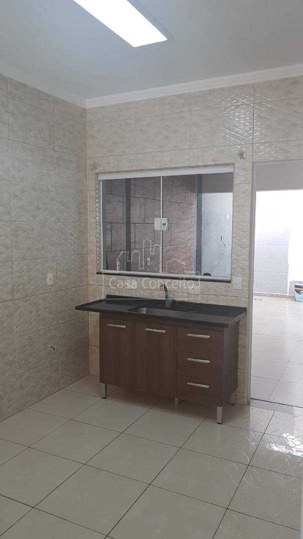 Casa térrea com 3 dormitórios, 1 suíte, pia em travertino, com cuba de vidro, banheiro com box, lavanderia com tanque de porcelana branco. Acabamento de primeira e sanca, área de luz, garagem descoberta para dois carros.