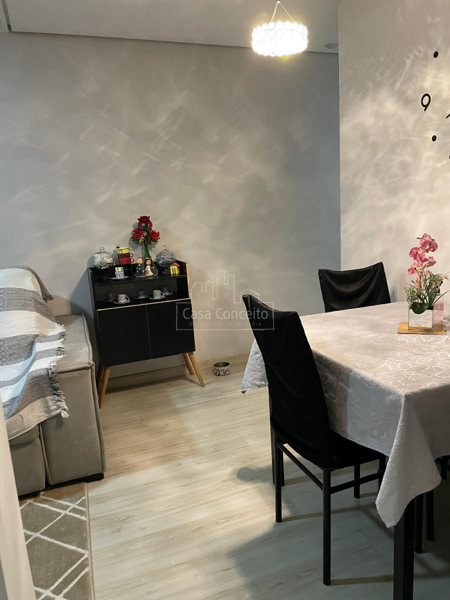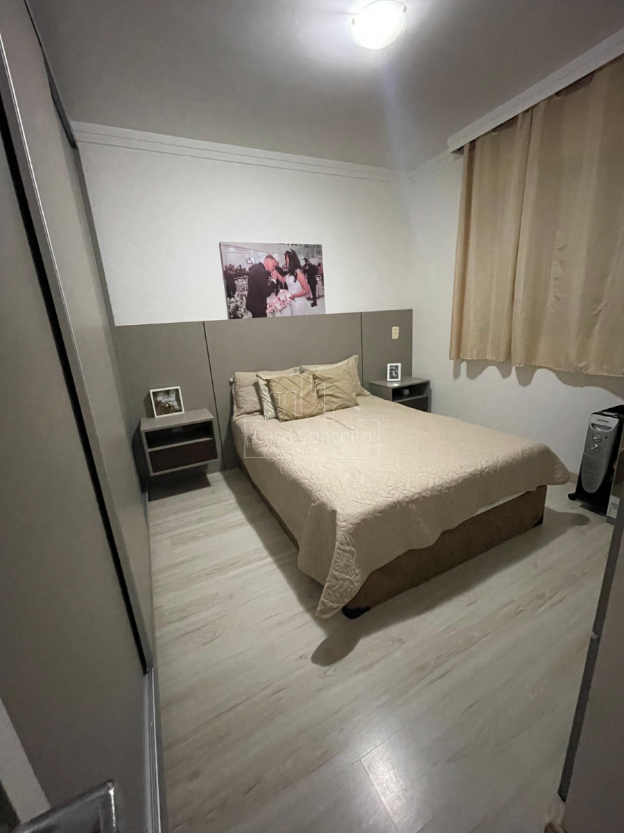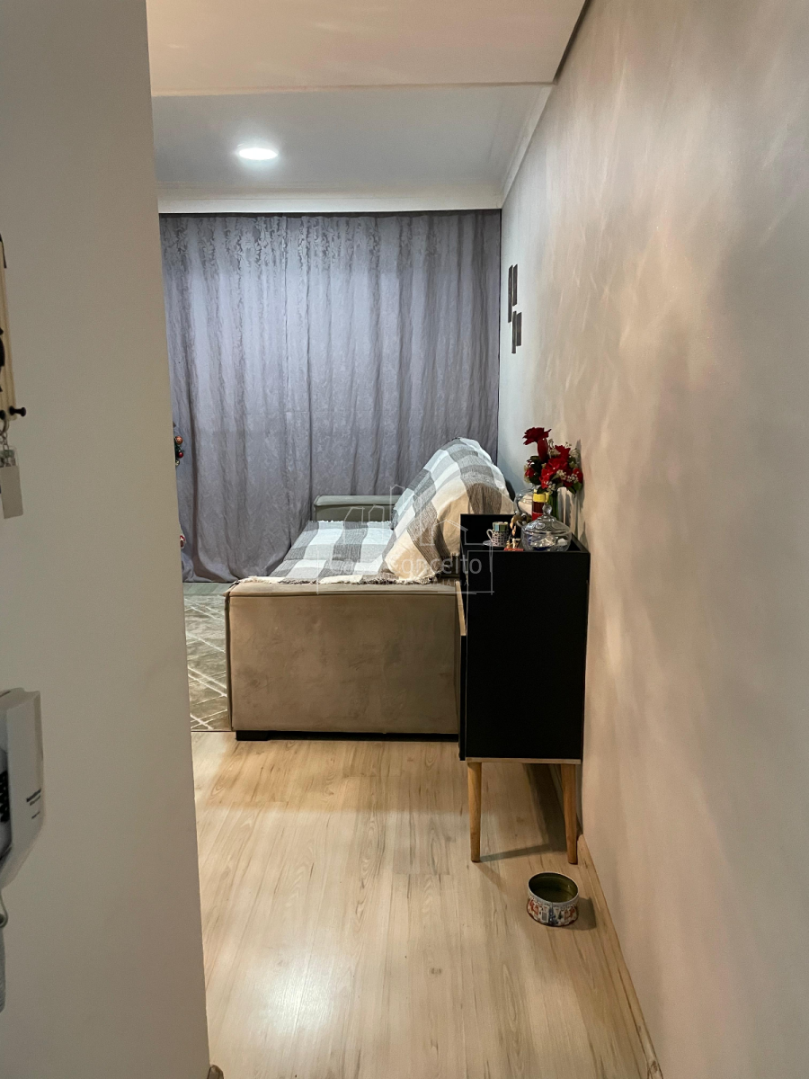 O imóvel possui piso laminado e pendentes instalados na sala e banheiro.