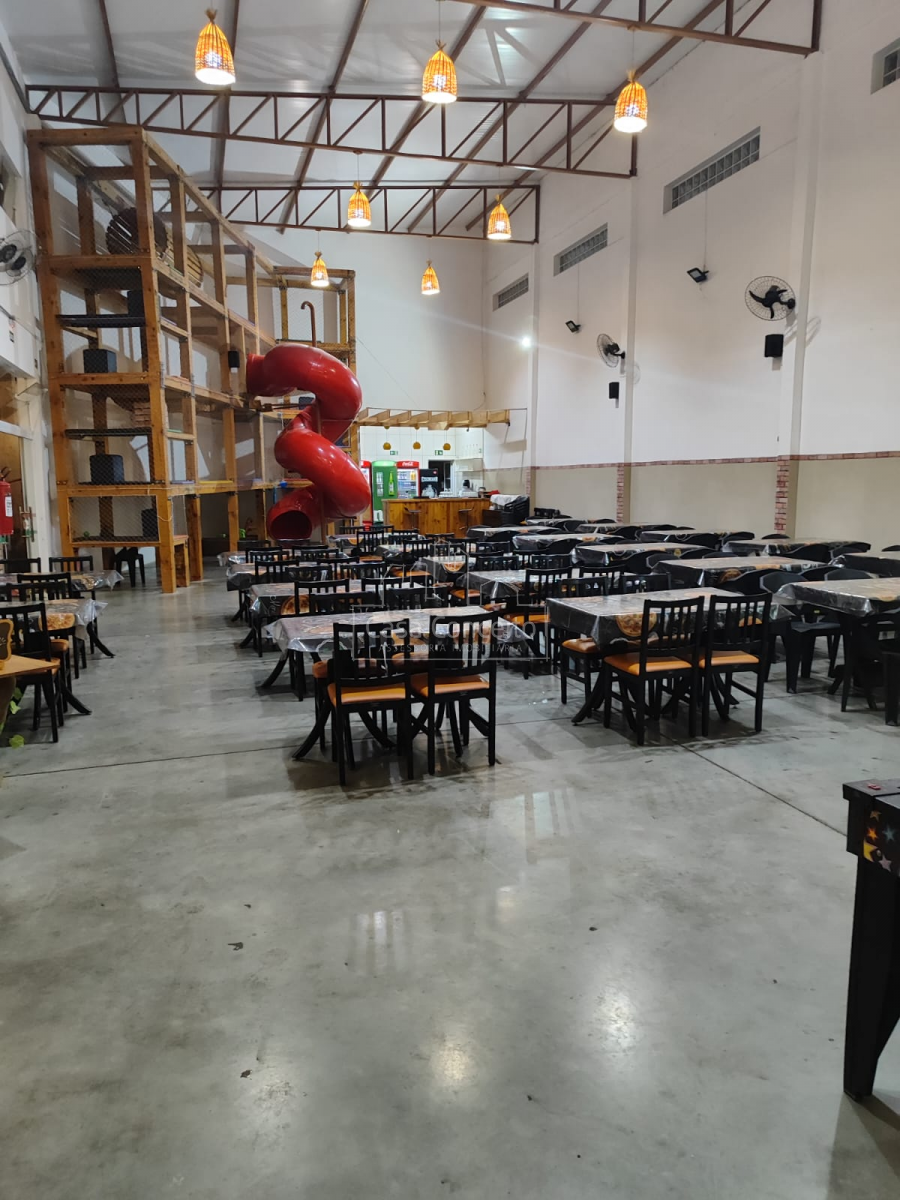 O barracão conta com uma recepção acolhedora, ideal para atender seus clientes com profissionalismo. O salão amplo é perfeito para diversas atividades comerciais e possui 2 cozinhas totalmente equipadas, facilitando o preparo de refeições e eventos. Com 4 banheiros (masculinos e femininos) bem distribuídos, as necessidades de funcionários e clientes são atendidas com comodidade. A área externa espaçosa é ideal para momentos de descontração ou para expandir seu negócio, e ainda conta com um espaço infantil dedicado, permitindo que os clientes tragam seus filhos. O estacionamento amplo tem capacidade para até 10 veículos, garantindo segurança e comodidade.