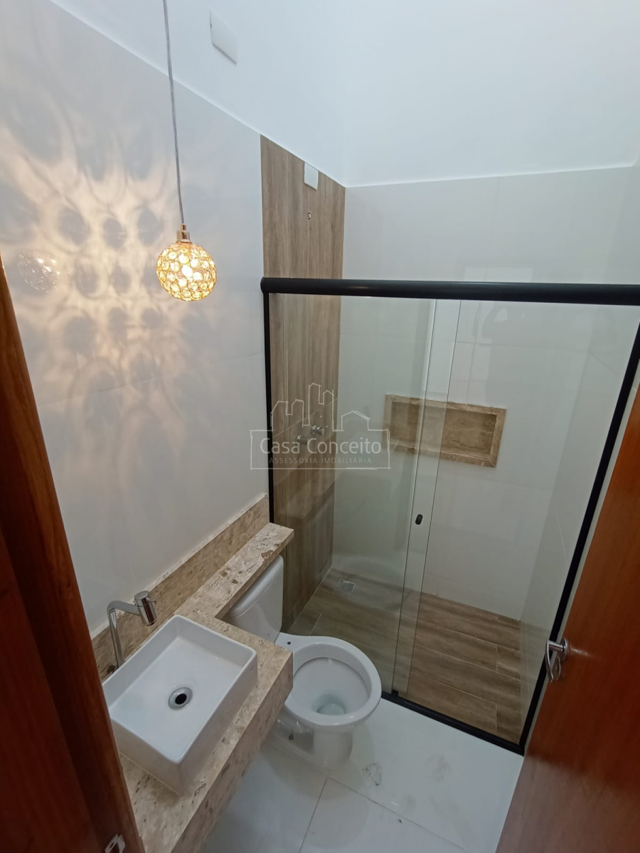 A casa conta com dois quartos e uma suíte, garantindo espaço e privacidade para os moradores. A cozinha americana integrada à área gourmet proporciona um ambiente perfeito para receber amigos e familiares. Além disso, o imóvel possui infraestrutura para ar-condicionado e uma agradável piscina com hidromassagem, ideal para momentos de relaxamento.