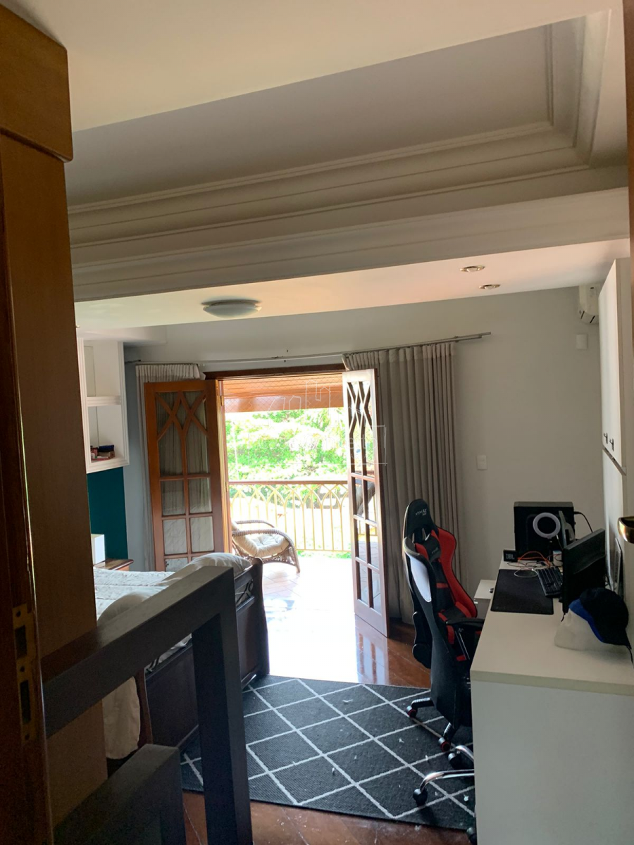 Suíte master com móveis modulados e sacada coberta, proporcionando privacidade e conforto.