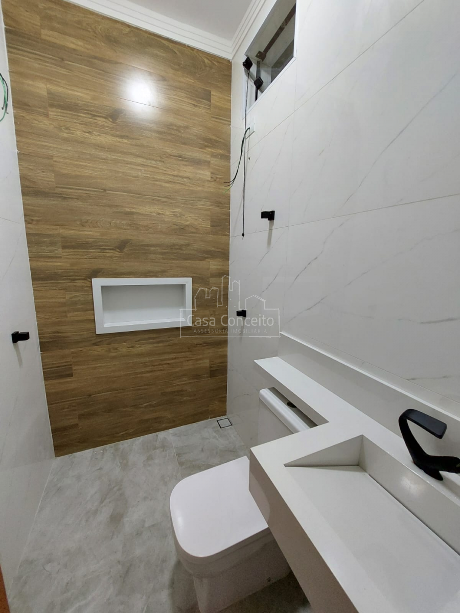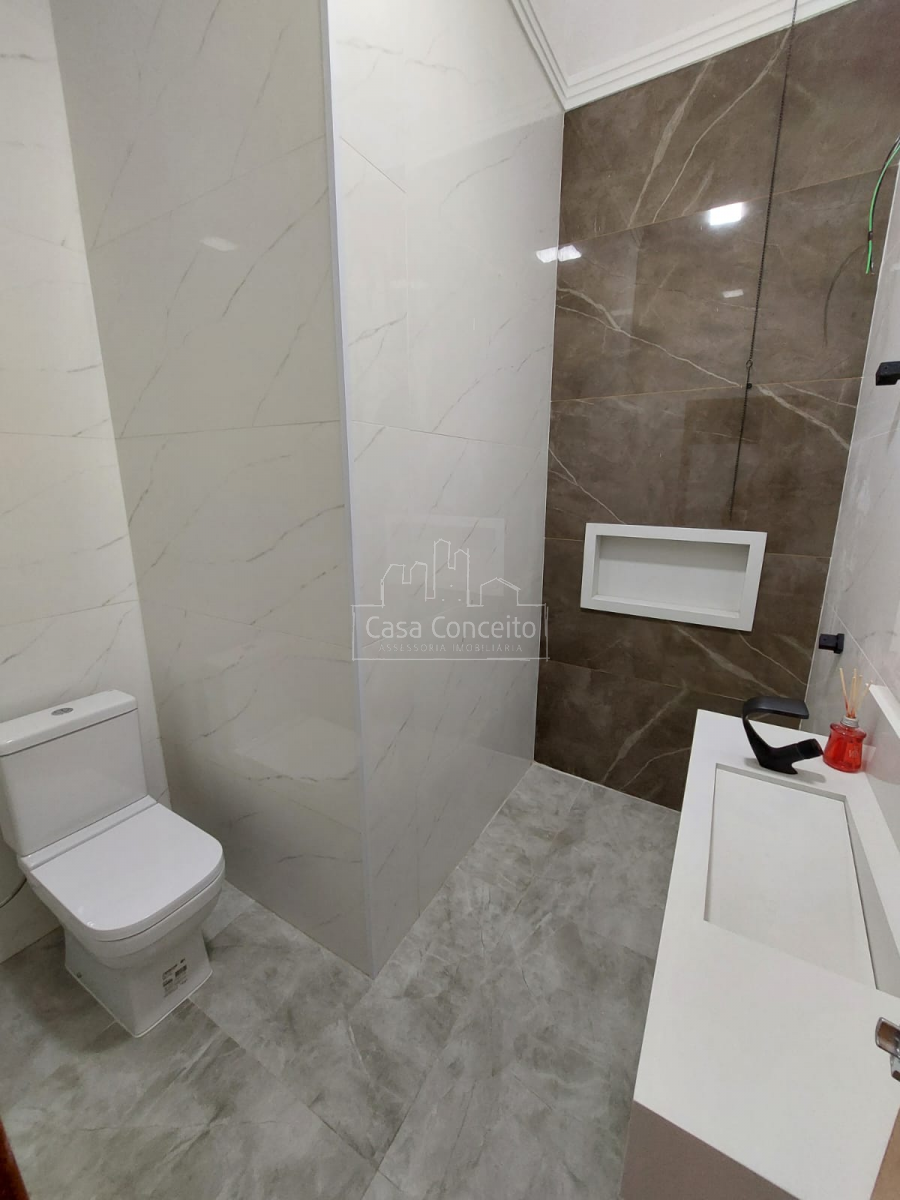 A cozinha é equipada com bancada de mármore, pia gourmet, exaustor e cooktop, oferecendo praticidade e requinte. O imóvel possui 3 banheiros completos (incluindo os das suítes), todos com pias e nichos em Prime Branco, garantindo funcionalidade e estilo.