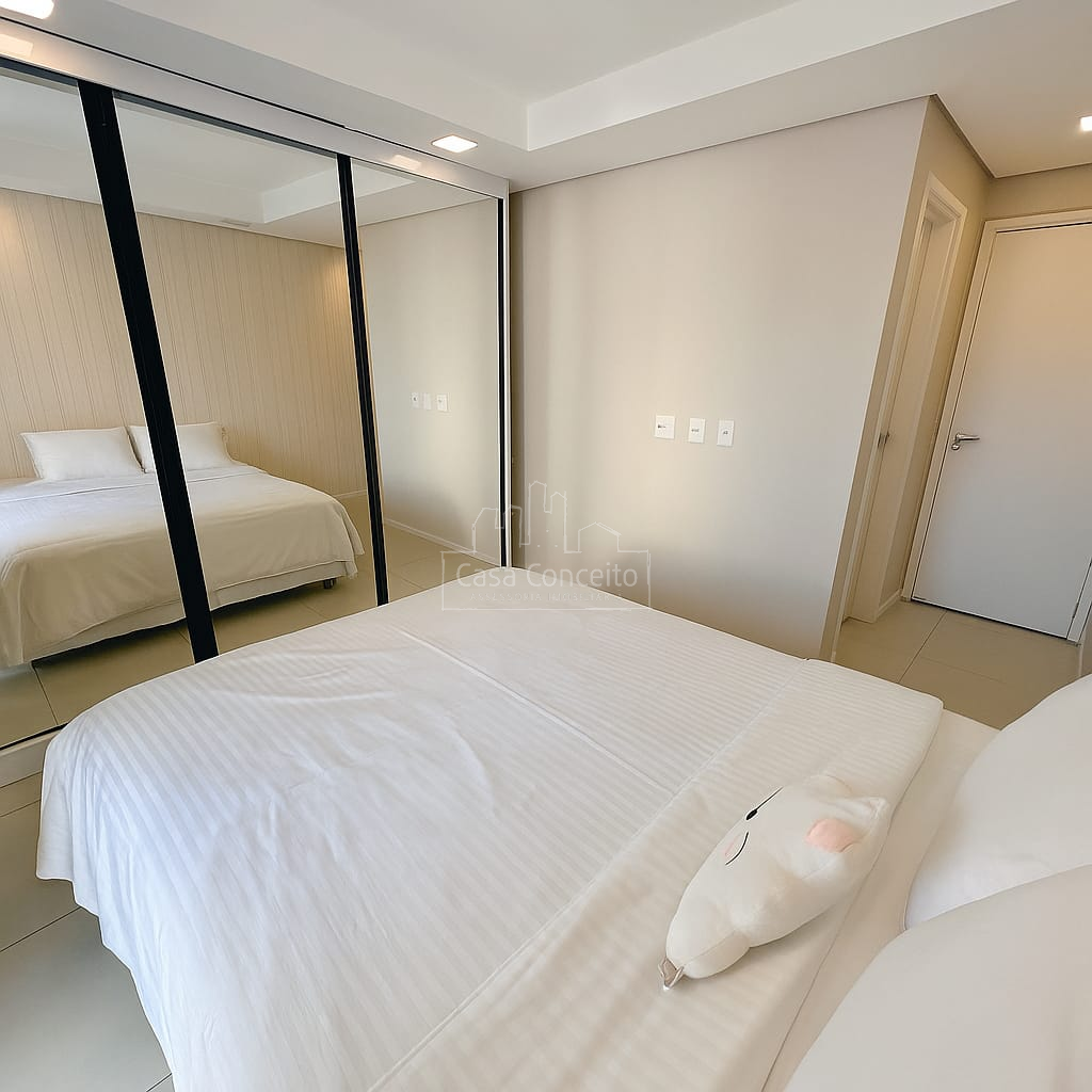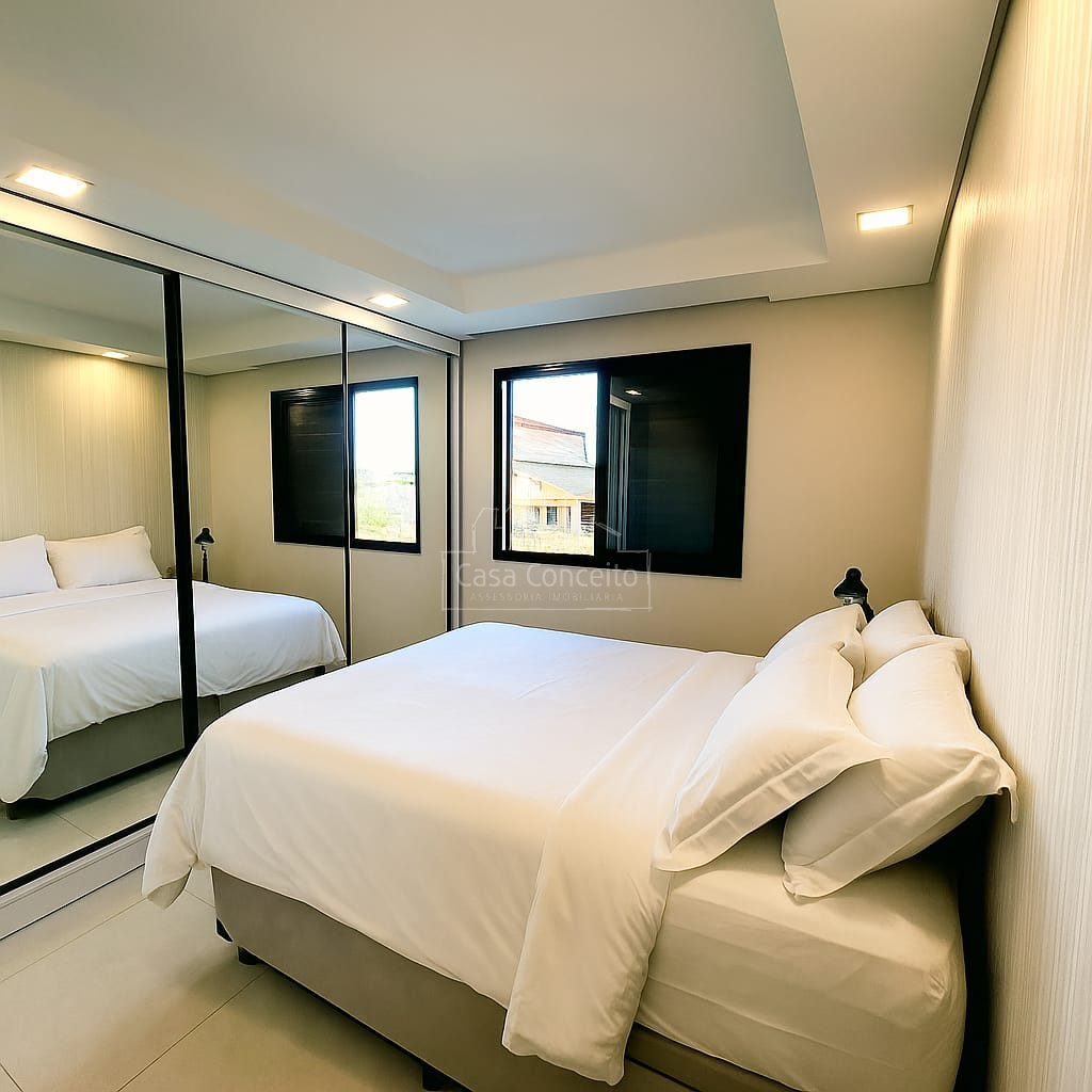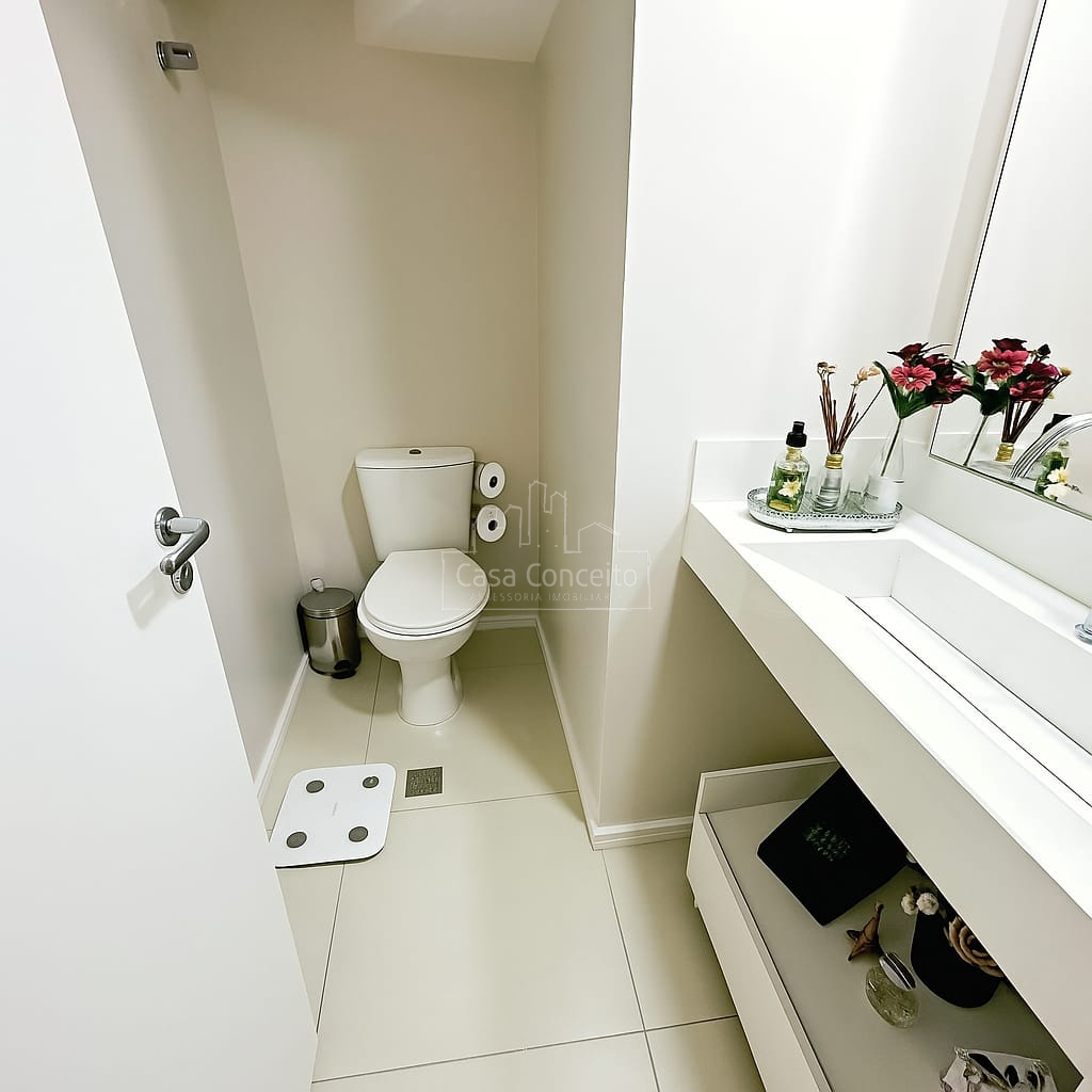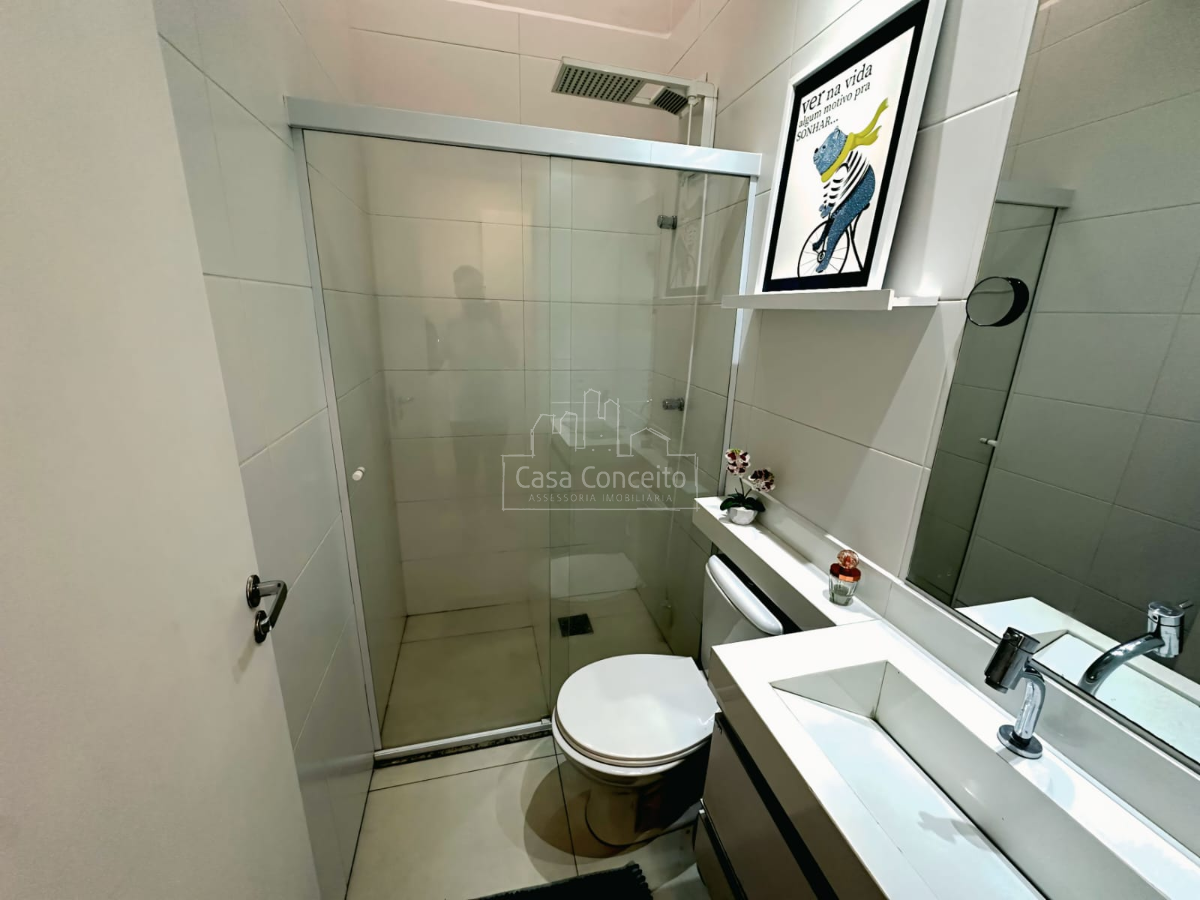 2 suítes, ambas com grandes guarda-roupas embutidos. Sendo 1 com varanda e os banheiros completos com armários sob a pia, box de vidro.
