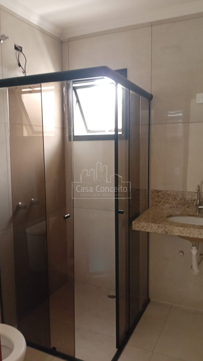 ▸ Banheiro social com box em vidro temperado fumê